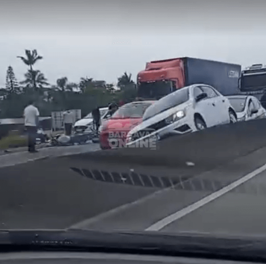 [VÍDEO] Acidente envolve cinco veículos e causa engavetamento na BR-101