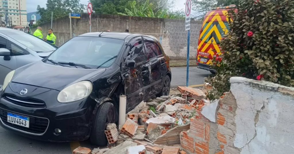 Acidentes de trânsito em cruzamentos terminam com veículos derrubando muros