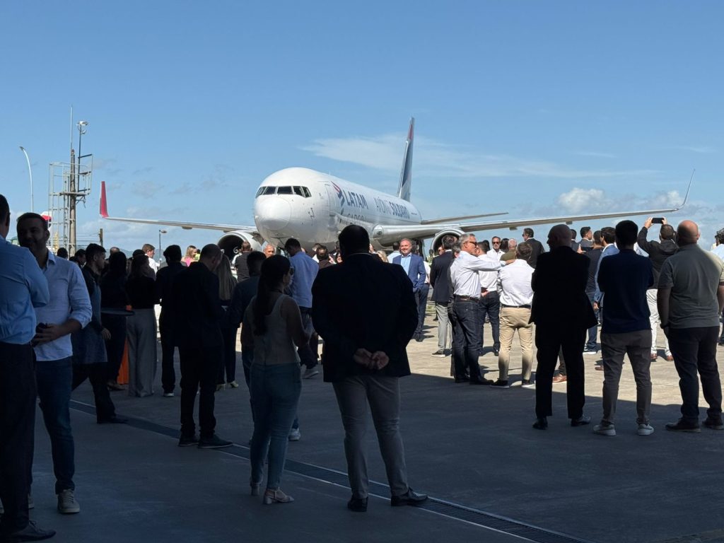 Nesta semana, o Aeroporto Internacional de Navegantes sediou a inauguração oficial da operação cargueira internacional que conecta o terminal à cidade de Miami, nos Estados Unidos. A iniciativa, conduzida pela Motiva, administradora do aeroporto, representa um novo marco para o desenvolvimento logístico e econômico de Navegantes. O evento reuniu aproximadamente 200 convidados, entre autoridades, parceiros logísticos e lideranças do setor, que acompanharam de perto a operação do cargueiro. Na ocasião, terça-feira (16) aeronave Boeing 767-300, operada pela Bringer Air Cargo, em parceria com a Latam Cargo, pousou no terminal às 8h42, procedente de Miami.