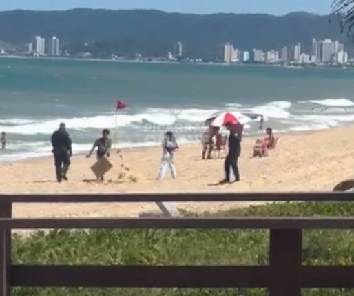 [VÍDEO] Ambulante irregular joga produtos no chão ao ser fiscalizado em Balneário Piçarras; atitude chamou atenção de banhistas