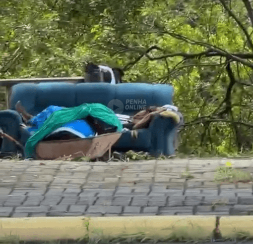 Moradores de Penha registraram a instalação de um acampamento improvisado em área urbana do município, chamando a atenção pela estrutura montada a céu aberto. As imagens mostram a presença de móveis como sofá e mesa, organizados no local como uma espécie de “sala de estar”, o que tem gerado preocupação entre vizinhos do local, que fica ao lado da ponte sobre o rio Gravatá, que limita Penha e Navegantes. A situação foi registrada por moradores e encaminhada ao Penha Online, que recebeu os relatos sobre o uso irregular do espaço público. A comunidade aguarda uma avaliação por parte do poder público para verificar as condições do local e adotar as providências cabíveis. Confira imagens no vídeo abaixo.