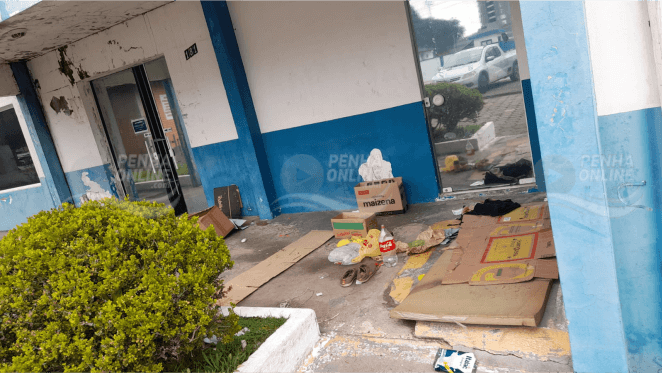 Andarilhos voltam a ocupar prédio em frente à Prefeitura de Penha e fazem antigo Besc de banheiro; vizinhos reclamam de mau cheio e insegurança