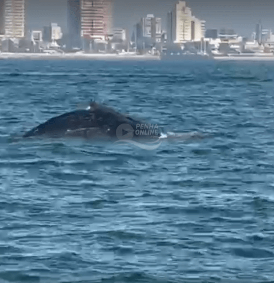 [VÍDEO] Baleias passearam pela orla de Penha nesta quinta-feira (14)