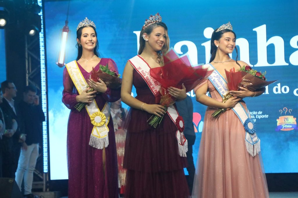 Barra Velha elegeu na noite desta sexta-feira (23) a realeza da 26ª edição da Festa do Pirão, o maior evento do município. Ao todo, 13 candidatas disputaram os títulos de Rainha, 1ª e 2ª Princesas da festa. A candidata Agatha Queiroz de Souza, representante da Associação Pirão na Lama foi coroada Rainha. A jovem Ana Claudia Hess, representante da Associação dos Moradores do Bairro Medeiros conquistou o título de 1ª Princesa, enquanto Eduarda Valetta representante do Lions Clube foi eleita 2ª Princesa.