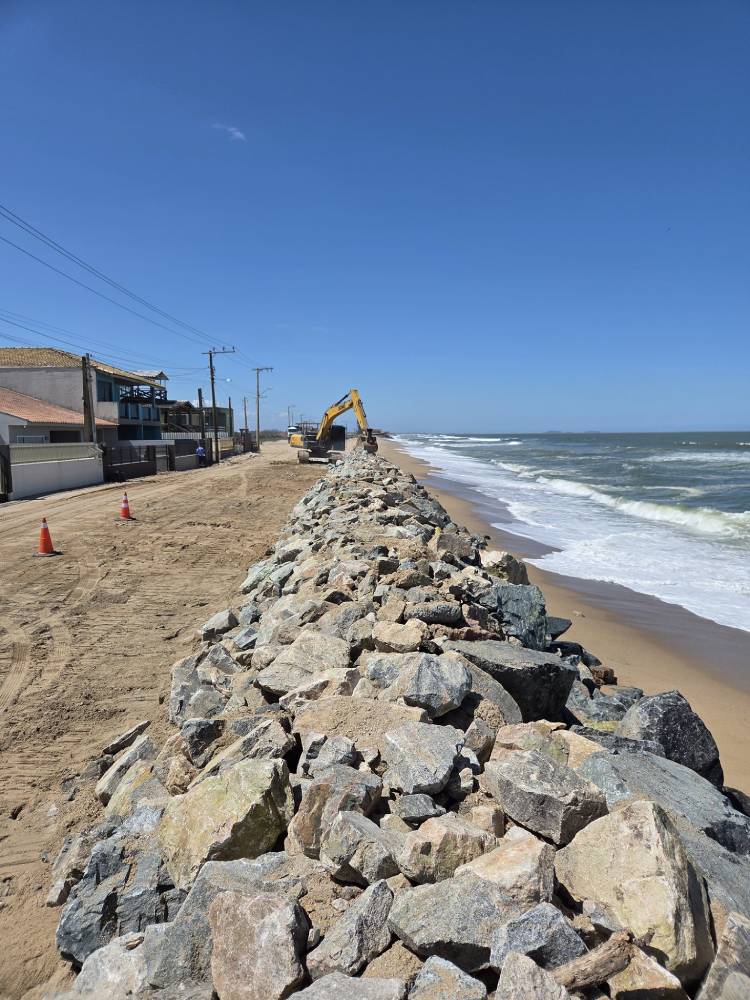 A ação está autorizada pelo Decreto Municipal nº 2.262/2025, que declarou situação de emergência no município em razão da erosão costeira e permite a execução de contenções emergenciais com pedras, justamente para proteger vias públicas, imóveis e moradores.