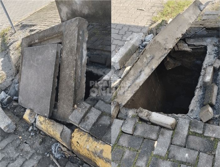 Uma moradora denuncia uma situação de alto risco entre a Rua das Camélias e a Rua das Rosas, no bairro Nossa Senhora da Paz, em Balneário Piçarras. Nas imagens que acompanham a denúncia, registras neste fim de semana, é possível ver um buraco profundo na calçada que, segundo a moradora, foi ocasionado após um caminhão passar pela via. “Aqui na esquina está assim depois que um caminhão passou, ninguém toma providências contra esse descaso”, conta a denunciante. Os moradores cobram um providência dos órgãos competentes para o conserto da via com urgência para garantir a segurança de todos os pedestres que passam pelo local.