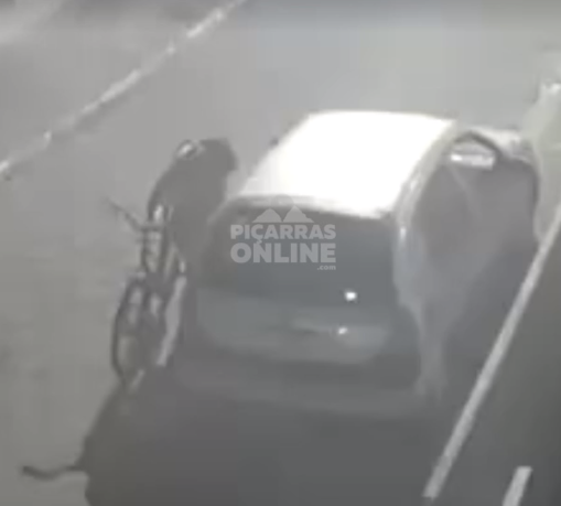 Imagens de câmeras de segurança registraram o momento em que um criminoso arrombou um veículo e furtou a mochila de um estudante, na madrugada desta quinta-feira (11), por volta das 4:20h, na Rua Mário Braz Santana, em Balneário Piçarras. O vídeo mostra o suspeito chegando ao local empurrando uma bicicleta. Ele tenta abrir a porta do carro várias vezes até conseguir arrombá-la. Na sequência, pega a mochila do estudante e foge.