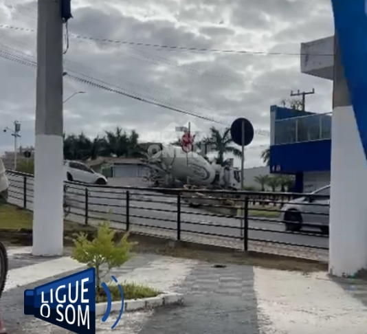 [VÍDEO] Caminhão betoneira dá banho de concreto na ponte sobre o Rio Piçarras