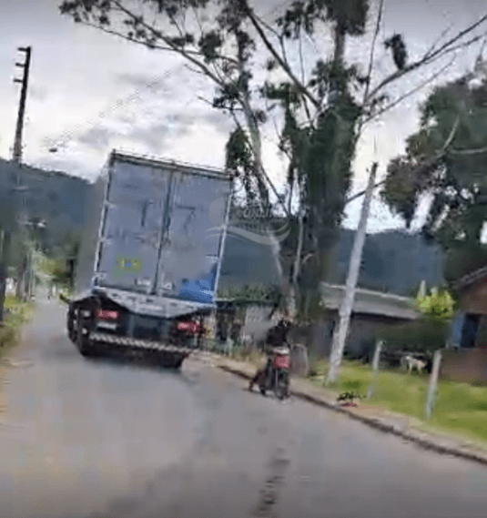 [VÍDEO] Caminhão solta água fétida de frutos do mar pelas ruas de Penha e morador fica na bronca