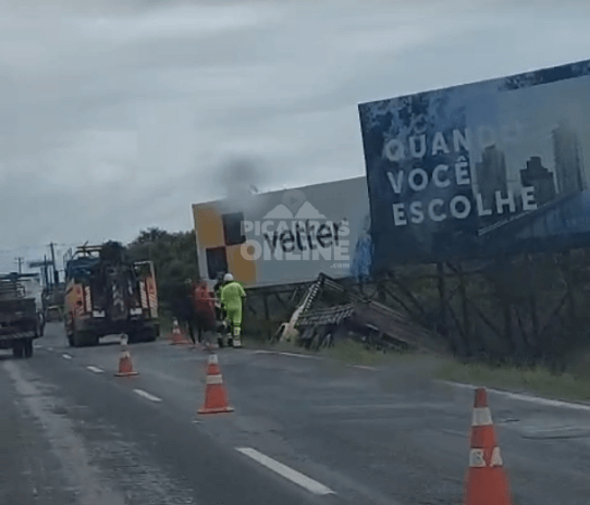 [VÍDEO] Caminhão vai parar no acostamento após perder controle na marginal da BR-101