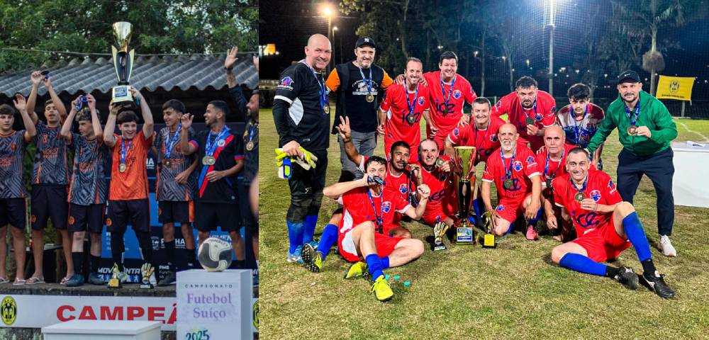 O último sábado, 20, foi marcado pela disputa das finais de duas categorias do Campeonato Municipal de Futebol Suíço. Manchester Penha e Santa Lídia foram declarados campeões do Sub 15 e Master, respectivamente. Os jogos foram realizados no Campo do Alex, no Quati.