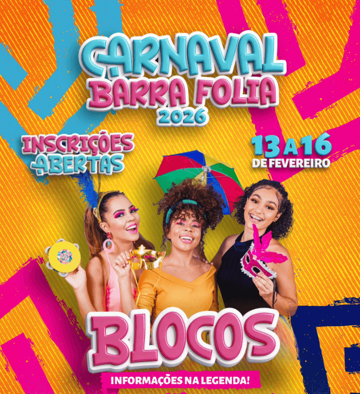A Prefeitura de Barra Velha abriu as inscrições para os blocos que desejam participar do Carnaval Barra Folia 2026. O evento será realizado entre os dias 13 e 16 de fevereiro e promete movimentar a cidade com programação festiva ao longo de vários dias.