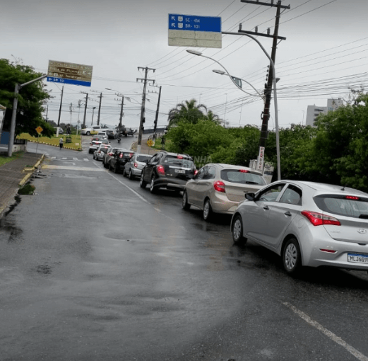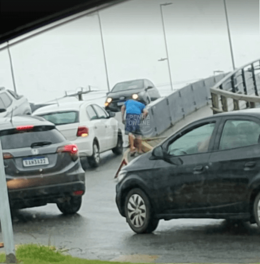 Carro bate na cabeceira da ponte sobre o rio Piçarras e congestiona trânsito entre Penha e Balneário Piçarras