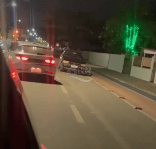 Um motorista foi flagrado trafegando na contramão na Avenida Eugênio Krause, uma das vias mais movimentadas de Penha. O condutor percorreu um longo trecho no sentido errado, surpreendendo outros motoristas e gerando perigo de colisões frontais na noite deste domingo (8). Um dos condutores que presenciou a cena relatou: “Eu parei de frente com ele, até fiquei com medo porque ele veio vindo e até achei que ia dar de frente. Eu não sei se o cara estava em surto, alguma coisa. Mas ele passou por mim e continuou. Os outros carros lá atrás dando sinal, e ele continuou indo. Foi na altura do Koch do Centro, do grande, passou pelo Mercado Silva e continuou em frente”, disse ele ao Penha Online.
