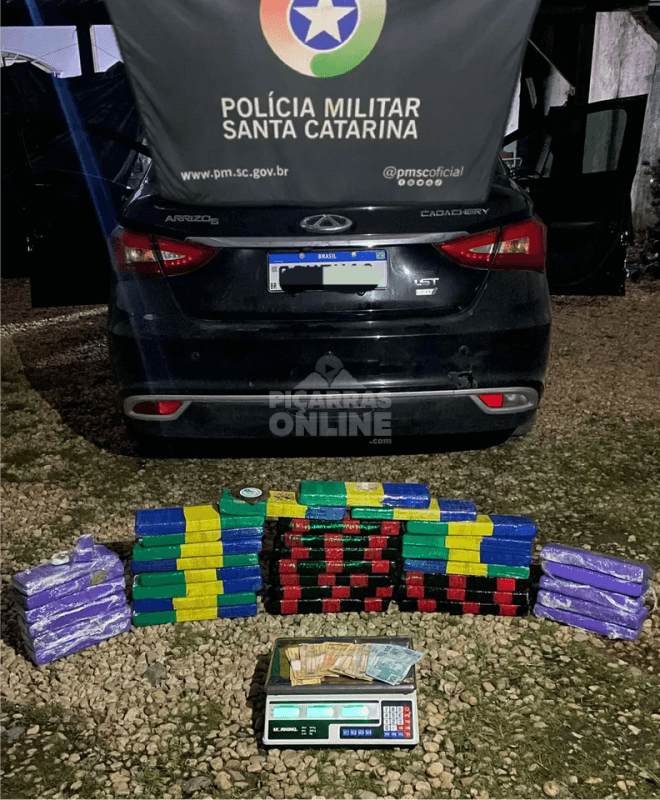 Um casal foi preso em Balneário Piçarras, durante uma operação conjunta das polícias militares de Itajaí, Navegantes, Penha e da própria cidade. O homem e a mulher são suspeitos de tráfico de drogas, associação para o tráfico e receptação. Segundo a Polícia Militar, os dois realizavam a comercialização de drogas no modelo “delivery”, utilizando um veículo para as entregas. Durante a abordagem, os policiais localizaram uma caixa com 25 tabletes de maconha, totalizando cerca de 32kg, além de 100g de haxixe.