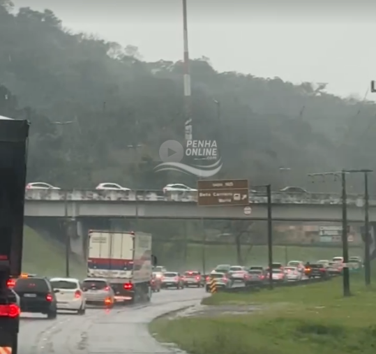 Por volta de 14:20h deste domingo (21), uma forte chuva caiu em Penha e região. Minutos antes, um alerta meteorológico havia chegado aos aparelhos celulares, tanto de moradores quanto de turistas. A partir daí, um fluxo intenso de veículos se formou na rodovia Transbeto, no sentido Penha x BR-101. A BR-101 por sua vez, já vinha com trânsito lento desde Barra Velha, vindo congestionar a partir na altura do KM 101, em Balneário Piçarras, sentido Sul, cuja lentidão se agravou na alça da Transbeto, com a saída dos veículos vindos de Penha. No momento, 15:35h, são cerca 9 quilômetros de lentidão, desde o Museu Oceanográfico da Univali até a altura do KM 109, em Penha. Já o sentido Norte da BR-101 tem aproximadamente 34 quilômetros de lentidão, desde Itapema até Itajaí. Não há registros de acidentes até o momento. Confira imagens no vídeo abaixo.