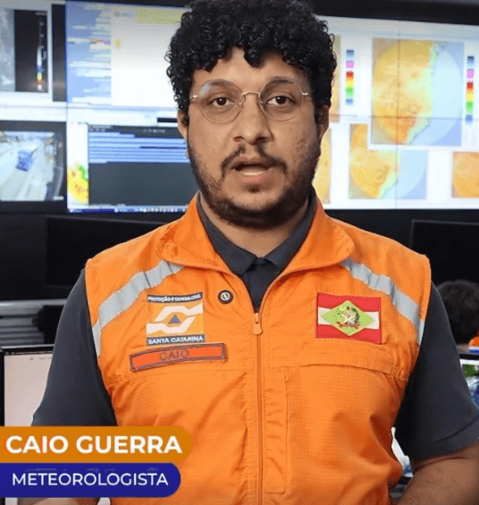 No domingo (11), os temporais ganham maior intensidade no Litoral e em áreas próximas. Já no Grande Oeste, as instabilidades ocorrem de forma mais isolada, em função da entrada gradual de ar mais seco. Essa massa de ar contribui para que as temperaturas fiquem mais baixas no anoitecer, próximas a 9°C no Planalto Sul e entre 10°C e 14°C no Grande Oeste. Durante a tarde, as temperaturas se elevam, principalmente no Litoral, com máximas em torno de 35°C no Litoral Norte, Litoral Sul e Grande Florianópolis.