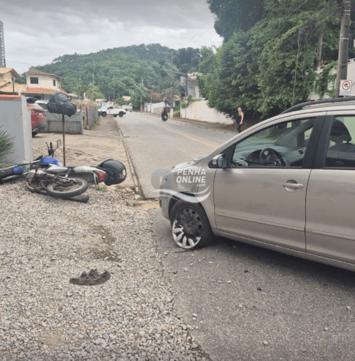 Colisão entre carro e moto em Penha deixa condutor da motocicleta com ferimentos