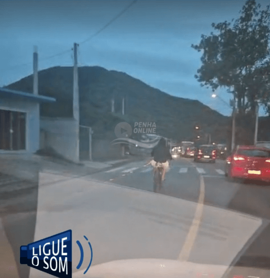 Duas pessoas, aparentemente adolescentes, foram flagradas colocando em risco a própria segurança e a de motoristas ao trafegarem com bicicletas motorizadas de forma imprudente em Penha. As imagens, enviadas por leitores do Penha Online, mostram os condutores circulando entre veículos e até realizando ultrapassagens em locais proibidos. Os flagrantes ocorreram em dois pontos diferentes da cidade: na Rua Timóteo Perfeito Flores, no bairro Gravatá, e na movimentada Avenida Eugênio Krause, no Centro.