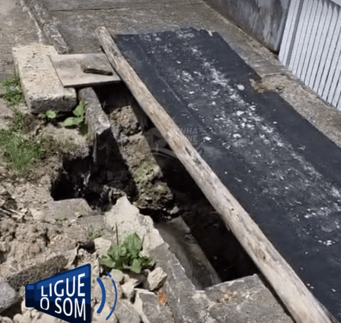 [VÍDEO] Cratera gigante entre a rua e a calçada leva muito perigo em rua do Centro de Penha