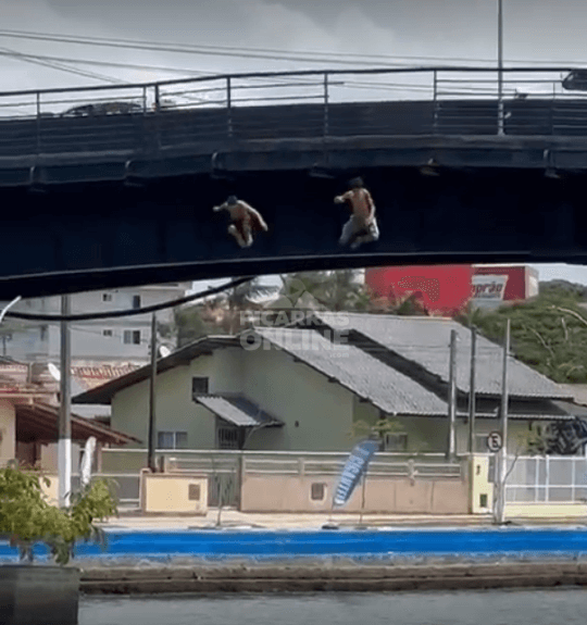 [VÍDEO] Diversão perigosa: jovens se juntam e saltam da ponte sobre o rio Piçarras