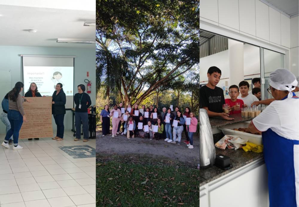 As atividades são compostas por palestras, rodas de conversa e oficinas práticas, com abordagem de temáticas como Boas Práticas de Manipulação de Alimentos, alimentação saudável e sustentável no contexto escolar, higiene e prevenção de acidentes.