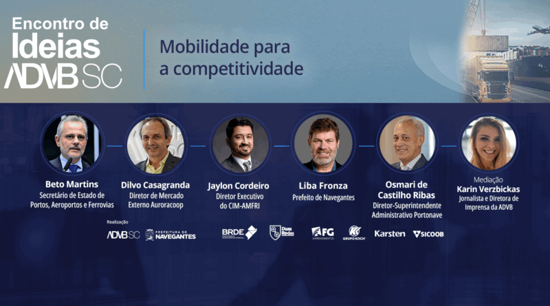 A Associação dos Dirigentes de Vendas e Marketing do Brasil de Santa Catarina (ADVB/SC) e a Prefeitura de Navegantes, com apoio da Portonave, promovem no dia 16 de setembro (terça-feira) o “Encontro de Ideias”. O evento terá como tema central o papel da mobilidade como fator estratégico para impulsionar a competitividade e o desenvolvimento econômico do estado.