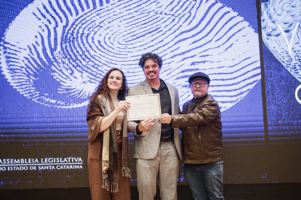 O diploma de reconhecimento foi entregue aos professores da Escola do Mar, Liziane Téo e Cacá Fagundes. Além deles, servidores da Secretaria Municipal de Educação e da Fundema estiveram representando Barra Velha.