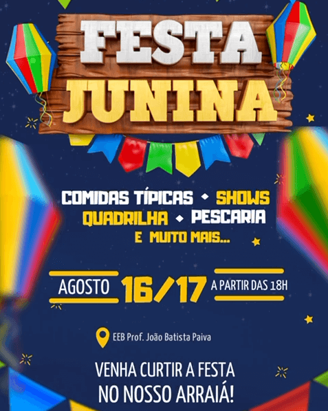 Neste próximo fim de semana, sábado (16) e domingo (17), a Escola João Batista Paiva promove mais uma edição de sua Festa Junina. O evento contará com comidas típicas, shows, quadrilha, pescaria, churrasco, brincadeiras e muita diversão para toda a família. No sábado, a festa tem início às 18h, noite que contará com a apresentação da Banda Voltz. Já no domingo o arraiá terá início às 10:30h, com o tradicional almoço festivo, seguido pelo famoso bingão do Paiva, que começa às 14h. Participe você também: Rua Manoel Arcanjo Ribeiro, localidade da Praia Grande, Penha. Confira no vídeo, o convite do diretor Edu Leite. Confira o vídeo a seguir.
