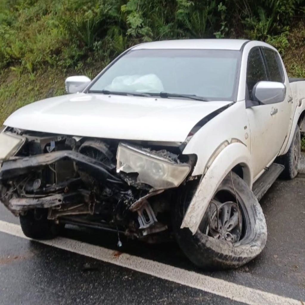 Estouro de pneu provoca saída de pista e destrói Mitsubishi L200