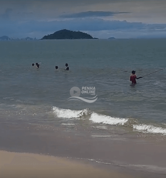 [VÍDEO] Homem é flagrado pescando com vara e anzol no meio de pessoas que se banhavam em praia de Penha