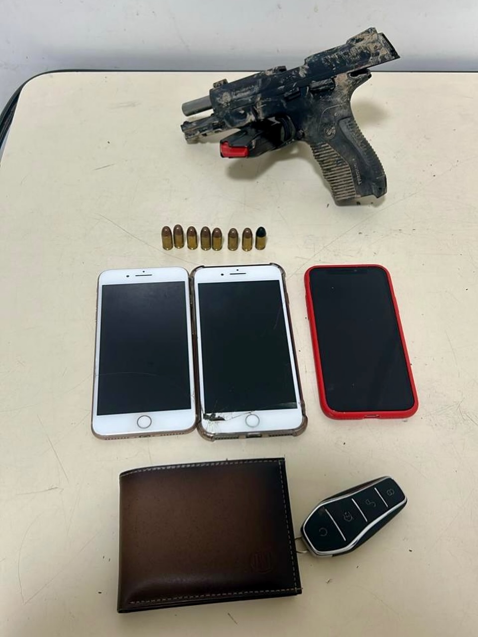 Uma pistola calibre .380 foi apreendida nas proximidades. A ação contou com o apoio de guarnições de Navegantes e Blumenau. O veículo recuperado e os materiais apreendidos foram encaminhados para os procedimentos legais cabíveis.