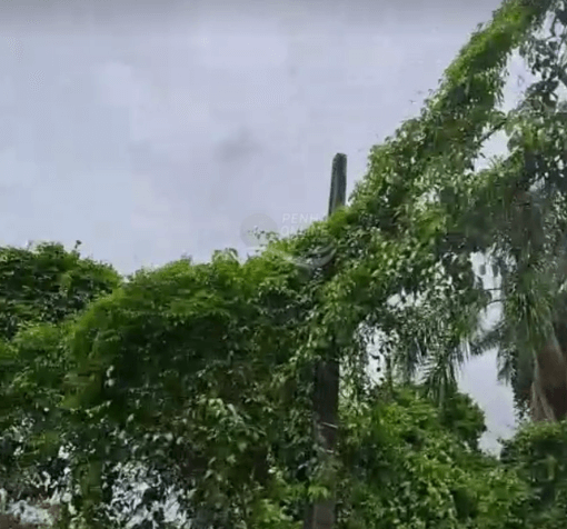 O avanço da vegetação tem causado transtornos na Rua Mário José Tiago, no bairro Nossa Senhora de Fátima, em Penha. Imagens registradas por um morador mostram a vegetação alta invadindo a rua, cobrindo parte da luminária e avançando tanto no início quanto no final da via. A situação dificulta a circulação e deixa a rua parcialmente às escuras durante a noite.
