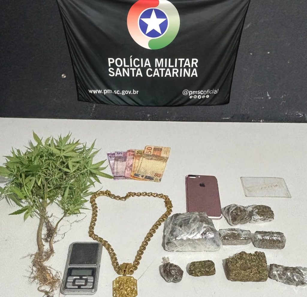 Na segunda ocorrência, policiais identificaram uma movimentação típica de “disque-entrega” de entorpecentes em uma residência. Durante a ação, um homem foi preso com 345 gramas de maconha, dois pés da planta, uma balança de precisão, um celular e R$ 90 em dinheiro. O suspeito também foi encaminhado à Central de Plantão Policial de Itajaí.