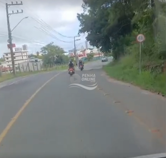 Um motorista fez um desabafo contra condutores de motos que obrigaram todos a transitar numa velocidade aproximada a 10 km/h ao longo de toda a Rua Timóteo Perfeito Flores, no Gravatá de Penha. Segundo ele, a situação começou em Navegantes, passou pela Rua São Miguel e seguiu até chegar na Rua Inácio Francisco Souza, no bairro Armação. “Duas Biz vindo a 10 km/h, desde Navegantes a Penha puxando o trânsito. O pessoal querendo trabalhar e esses aí puxando o trânsito pra ir à praia. Bonito né. Isso é Penha. Isso pela lei não pode né, uma moto do lado da outra, trancando”, desabafou ele.