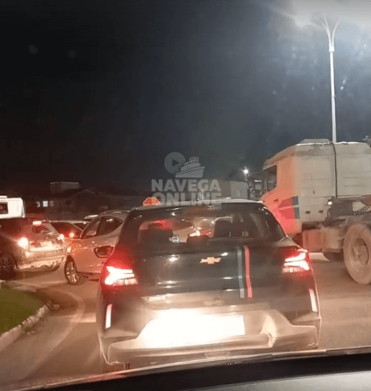 Um congestionamento causado por caminhões causou indignação entre os moradores de Navegantes. Um dos motoristas registrou a cena e mostrou a fila de veículos que se formou no local na região da via portuária, causando lentidão no trânsito. “Navegantes tá f***. São 22h, mais de 10 minutos parado porque os caminhões trancam tudo”, desabafou o morador na noite da quinta-feira (18). Devido ao fato do problema ser constante na localidade, os moradores cobram mais fiscalização e medidas que organizem o fluxo de caminhões para evitar novos congestionamentos e prejuízos no tráfego. Confira o vídeo abaixo.