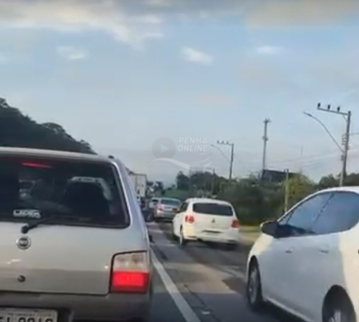 Motoristas foram flagrados utilizando o acostamento da BR-101, em Penha, para furar congestionamento. A infração foi registrada em vídeo por um condutor que permanecia parado em uma longa fila. Nas imagens enviadas ao Penha Online, é possível ver diversos veículos trafegando pelo acostamento, alguns em velocidade considerada alta, colocando em risco quem circula corretamente pela rodovia.