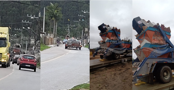 Na tarde desta terça-feira (2), moradores do bairro Santa Lídia, Penha, ficaram sem energia elétrica após um caminhão carregado com três caçambas danificar a fiação. Segundo informações dos moradores, duas das caçambas estavam empilhadas uma em cima da outra e, mesmo percebendo que a altura iria destruir a fiação elétrica, o motorista seguiu adiante.