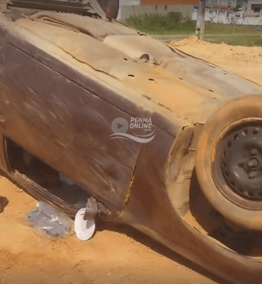 [VÍDEO] Penha: carro capota no loteamento Santa Regina