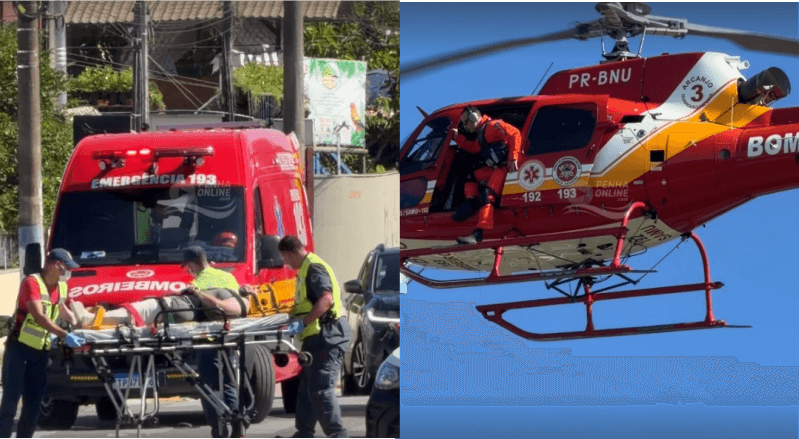 [VÍDEO] Penha: colisão entre bicicleta e moto deixa ciclista com ferimento grave; vítima é conduzida de helicóptero para atendimento hospitalar