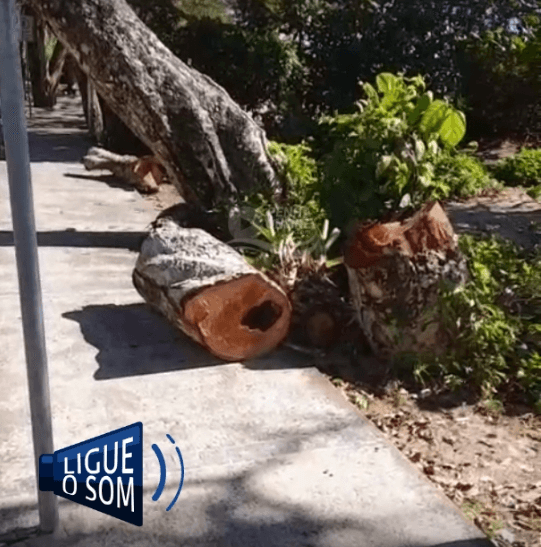 Além disso, outro questionamento levantado foi acerca dos troncos da árvore cortada que ainda não foram removidos, mas permanecem no meio-fio e calçada do trecho. “Os entulhos dela estão aqui ainda. Isso aqui já fazem dois meses que foi cortada. Vamos aguardar”, afirma o denunciante. Diante do iminente risco, a população solicita uma ação imediata dos órgãos públicos para garantir mais segurança para motoristas e pedestres. Confira o vídeo a seguir.