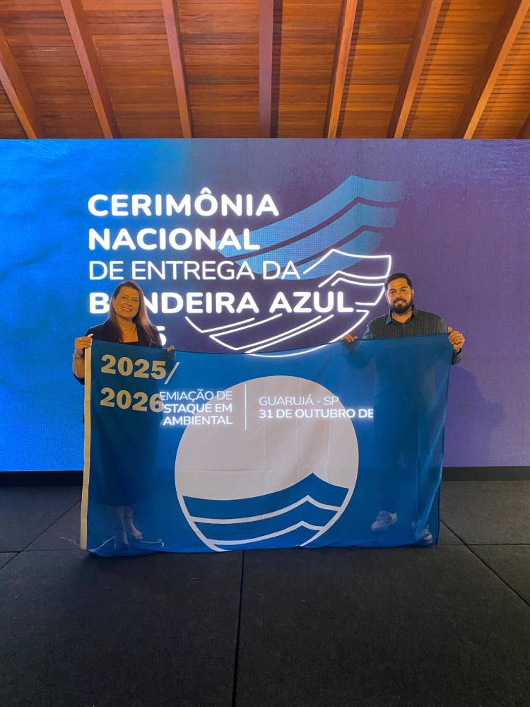 Penha recebeu nesta sexta-feira, 31 – em cerimônia realizada no Guarujá (SP) – as quatro bandeiras azuis que irão tremular nos balneários de Penha para a Temporada 2025/2026. Bacia da Vovó, Praia da Saudade, Praia Grande e Praia Vermelha ganharam o direito de hastear a reconhecida bandeira azulada, símbolo mundial de qualidade ambiental.