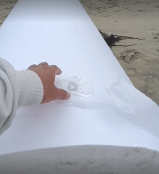 [VÍDEO] Penha: rolo enorme de tecido surge nas areias da Praia de Armação e intriga visitantes