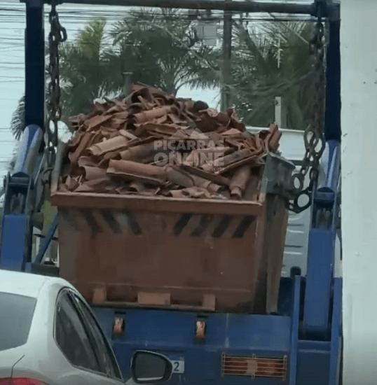 Um caminhão que transportava uma caçamba cheia de telhas soltas foi flagrado enquanto transitava pela Avenida Emanuel Pinto, Centro de Balneário Piçarras. Na sequência, o veículo virou à esquerda na Rua Antonio Martinho Telles (Rua 200), até chegar na Avenida Nereu Ramos, onde seguiu sentido Penha. As telhas da caçamba estavam soltas, o que poderia ter provocando acidentes, prejuízos materiais ou até mesmo ferir alguém, tudo em decorrência da falta de uma tela da proteção, ou cobertura adequada. O flagrante foi repassado à Prefeitura, cujo departamento responsável ficou de identificar a empresa proprietária do caminhão através da placa, e abordá-la sobre o caso. Confira o vídeo a seguir.