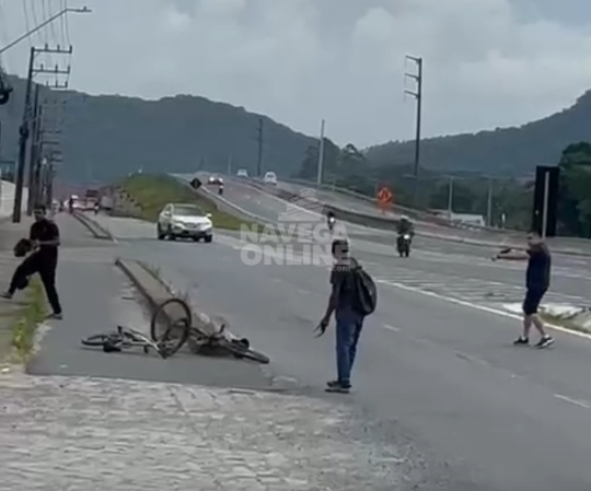 Dois homens que teriam se envolvido em uma colisão de bicicleta às margens da BR-470 por pouco não provocaram uma tragédia. Após uma breve discussão, um deles puxou uma faca e passou a ameaçar o outro, em plena luz do dia, com diversas testemunhas. O que os brigões não contavam é que um policial que passava pelo local presenciou a cena; ele sacou uma arma de fogo e apontou para o homem que tinha faca em mãos, ordenando que o mesmo soltasse o utensílio. Em seguida, a dupla foi obrigada a deitar-se no chão. A confusão, que ocorreu junto ao viaduto da Rua Onório Bortolato, foi controlada antes que alguém se ferisse. Confira imagens no vídeo abaixo.