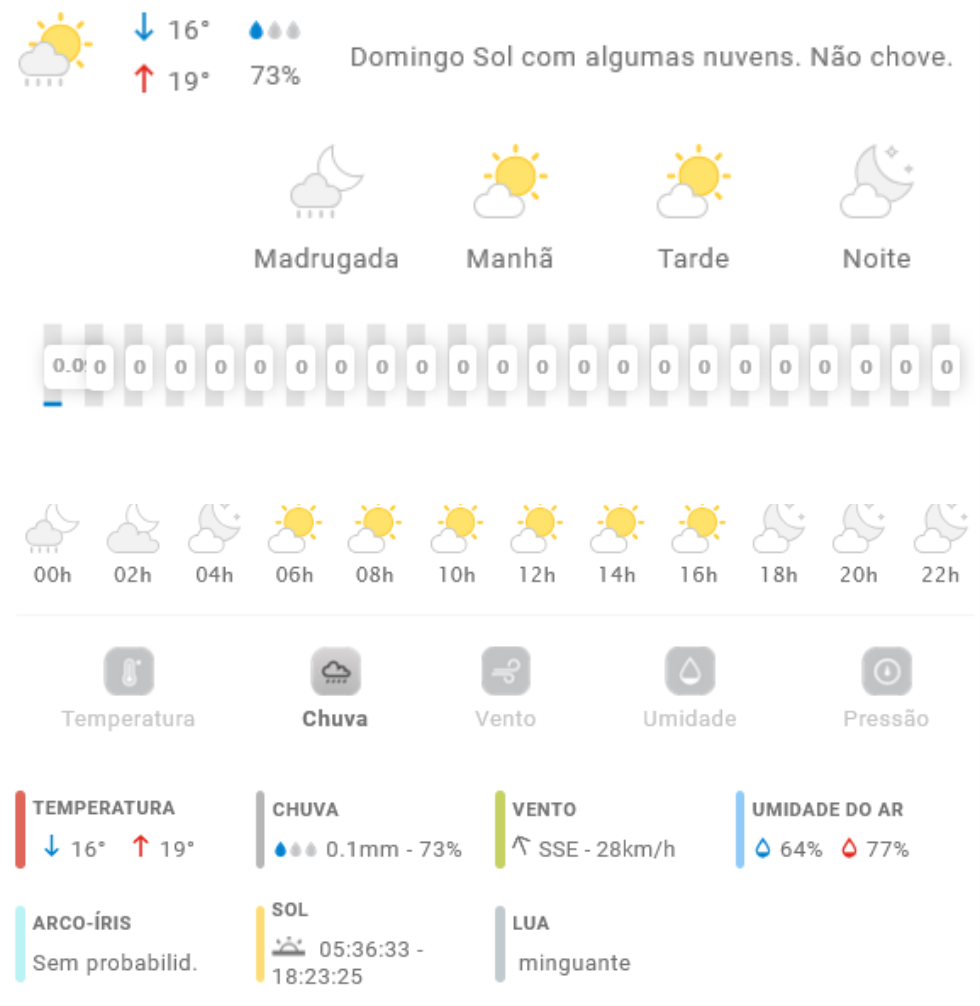 Penha Previsão do tempo Previsão do tempo para Penha: domingo, 19 de outubro 2025 18 de outubro de 2025 PUBLICIDADE Imagem: climatempo.com.br Continue Reading Anterior [VÍDEO] Parede de prédio em construção desaba durante ventania em Penha e destrói carroSeguinte Nota de falecimento: Manoel João Xavier Publicações mais recentes A voz do povo Esporte Penha Edital do Bolsa Atleta vira alvo de reclamações em Penha 7 de março de 2026 A voz do povo Educação Penha Trânsito Problema com rota de ônibus com estudantes de Penha faz crianças chegarem muito tarde em casa; pais reclamam 7 de março de 2026 A voz do povo Educação Penha ACS, ACE e professores da rede municipal de Penha indagam reajuste anual 7 de março de 2026