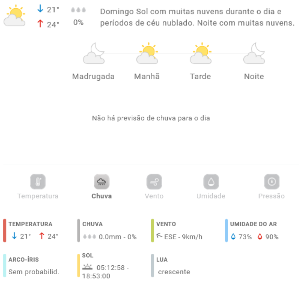 Penha Previsão do tempo Previsão do tempo para Penha: domingo, 30 de novembro 2025 29 de novembro de 2025 PUBLICIDADE Imagem: climatempo.com.br Continue Reading Anterior [VÍDEO] Corte de grama sem proteção causa prejuízo a motoristas em frente à Secretaria da Educação de PenhaSeguinte Com acesso a políticas públicas, produtores de cana de Penha ampliam e modernizam atividade Publicações mais recentes A voz do povo Esporte Penha Edital do Bolsa Atleta vira alvo de reclamações em Penha 7 de março de 2026 A voz do povo Educação Penha Trânsito Problema com rota de ônibus com estudantes de Penha faz crianças chegarem muito tarde em casa; pais reclamam 7 de março de 2026 A voz do povo Educação Penha ACS, ACE e professores da rede municipal de Penha indagam reajuste anual 7 de março de 2026