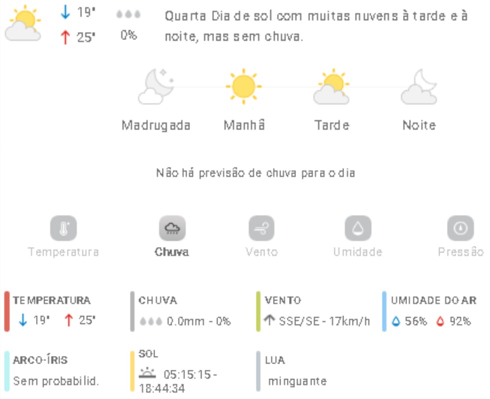 Penha Previsão do tempo Previsão do tempo para Penha: quarta-feira, 19 de novembro 2025 18 de novembro de 2025 PUBLICIDADE Imagem: climatempo.com.br Continue Reading Anterior [VÍDEO] Campeonato Brasileiro de Kart da CBA inicia edição histórica e com recorde de inscrições no Beto CarreroSeguinte Vereadores mirins visitam o prefeito de Penha Publicações mais recentes Penha Previsão do tempo Previsão do tempo para Penha: sábado, 7 de março de 2026 6 de março de 2026 Penha Polícia Operação Rede Catarina prende criminoso no Centro de Penha pelo crime de violência doméstica 6 de março de 2026 Penha Polícia Polícia Militar prende homem pelos crimes de ameaça e perseguição em Penha 6 de março de 2026