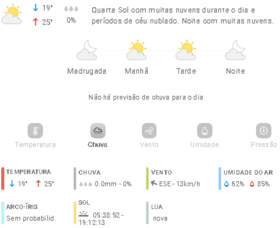 Penha Previsão do tempo Previsão do tempo para Penha: quarta-feira, 21 de janeiro 2026 20 de janeiro de 2026 PUBLICIDADE Imagem: climatempo.com.br Continue Reading Anterior [VÍDEO] Bate-Papo Online com Marinho Alves, secretário de Trânsito de PenhaSeguinte [VÍDEO] Penha: morador da Santa Lídia pede manutenção em rua sem pavimentação Publicações mais recentes Penha Previsão do tempo Previsão do tempo para Penha: sábado, 7 de março de 2026 6 de março de 2026 Penha Polícia Operação Rede Catarina prende criminoso no Centro de Penha pelo crime de violência doméstica 6 de março de 2026 Penha Polícia Polícia Militar prende homem pelos crimes de ameaça e perseguição em Penha 6 de março de 2026