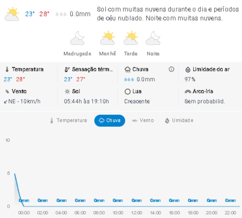 Penha Previsão do tempo Previsão do tempo para Penha: quarta-feira, 28 de janeiro 2026 27 de janeiro de 2026 PUBLICIDADE Imagem: climatempo.com.br Continue Reading Anterior [VÍDEO] Cadê o saneamento básico de Penha? Buraco aberto pela Águas de Penha há cinco meses causa transtorno em rua do CentroSeguinte [VÍDEO] Moradores continuam cobrando melhorias na limpeza das praias de Penha Publicações mais recentes Penha Previsão do tempo Previsão do tempo para Penha: sábado, 7 de março de 2026 6 de março de 2026 Penha Polícia Operação Rede Catarina prende criminoso no Centro de Penha pelo crime de violência doméstica 6 de março de 2026 Penha Polícia Polícia Militar prende homem pelos crimes de ameaça e perseguição em Penha 6 de março de 2026